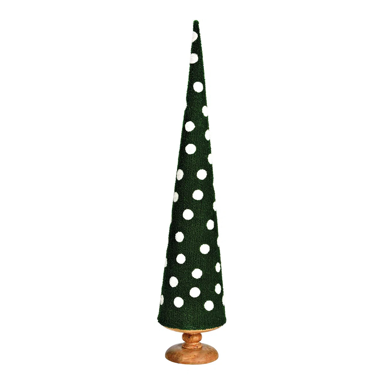 Abete a pois in stoffa e base in legno di mango. Esistono 3 misure: